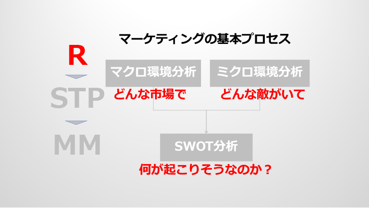 前回、Vol. 18ではマーケティングの基本プロセスの全体像をお話ししましたが、ここでR−STP−MMのうちの「R」(Research)について詳しく見ていきましょう。