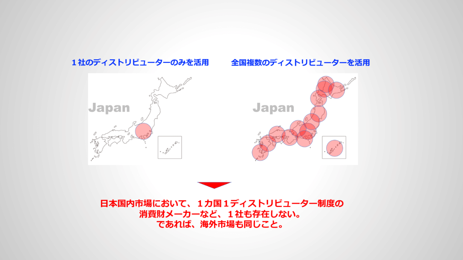 では、日本の消費財メーカーはディストリビューション・ネットワークの構築が不得意なのかといえば、決してそうではありません。一部のメーカーで、直販に徹底してこだわっている企業はあるものの、多くの消費財メーカーは日本国内市場において長年、当たり前のようにネットワークを構築し、活用してきているのです。