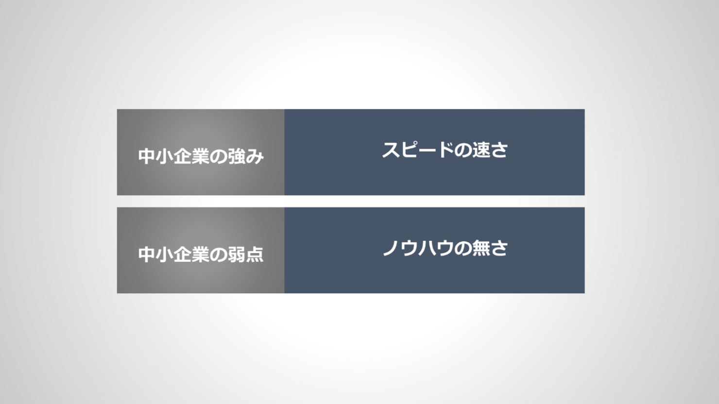 皆さんは、海外展開における中堅中小企業の最大の強みはなんだとお考えでしょうか?私は、「スピードの速さ」だと思います。逆に弱点についてはどうでしょうか?私は、「ノウハウのなさ」だと思います。