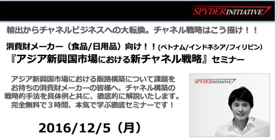 HOME » セミナー・講演 » 消費財メーカー(食品/日用品)向け!!(ベトナム/インドネシア/フィリピン) 『アジア新興国市場における新チャネル戦略』セミナー